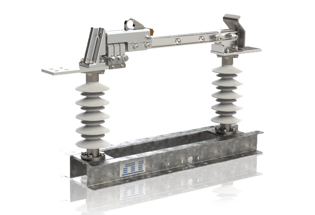 B1: rocker-type switch with a flexible conductor between the main contact’s moving part and the overhead line’s fixed terminal. Both of the load-break switch’s terminals can be connected to rigid connections that enable dense switch placement and optimum use of space.